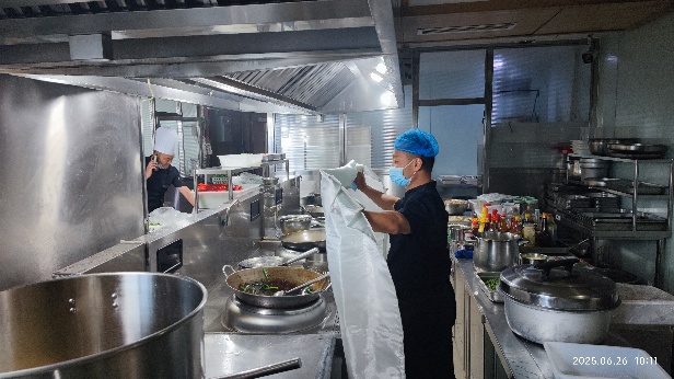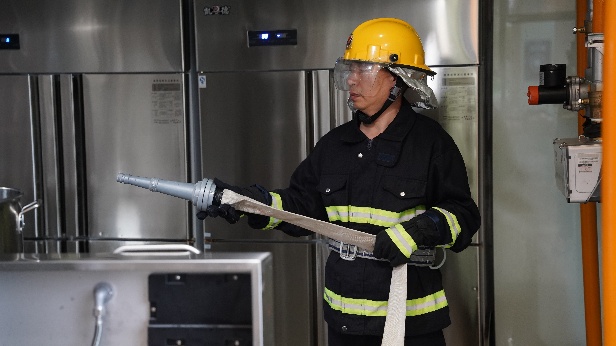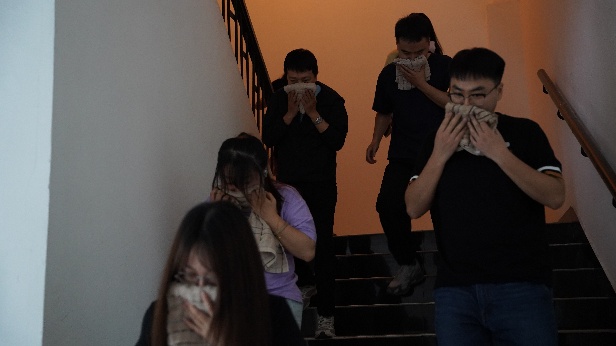 上午10:10,全員消防疏散演習(xí)正式開始。事故模擬八樓餐廳油鍋起火,險情發(fā)生后,現(xiàn)場人員迅速啟動初期滅火、人員撤離及警戒程序。應(yīng)急總指揮立即啟動應(yīng)急,各小組聞令而動。伴隨消防警報,全體員工反應(yīng)迅速,用消防毛巾掩住口鼻,嚴(yán)格遵循“彎腰低頭、捂住口鼻”要領(lǐng),在樓層疏散引導(dǎo)員指引下快速有序撤離。用時3分10秒,184名參演員工安全抵達一樓指定疏散集合點。